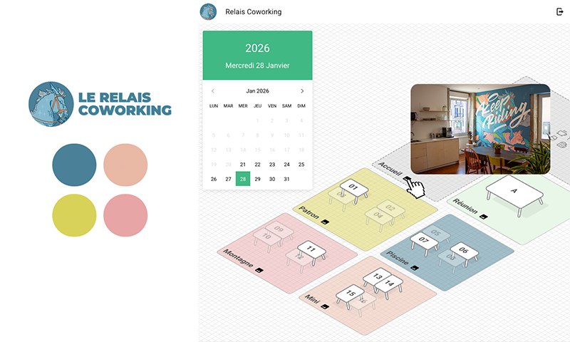 Une interface personnalisable avec votre logo, vos couleurs et les photos de chaque espace.